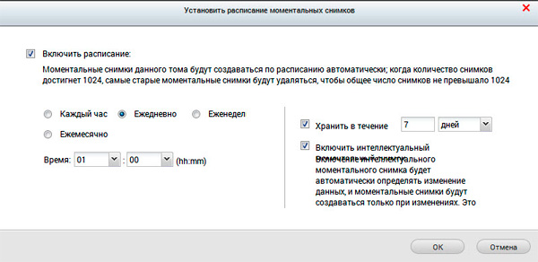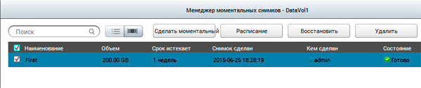 Состояние дисков. Здесь можно настроить систему создания "моментальных снимков".