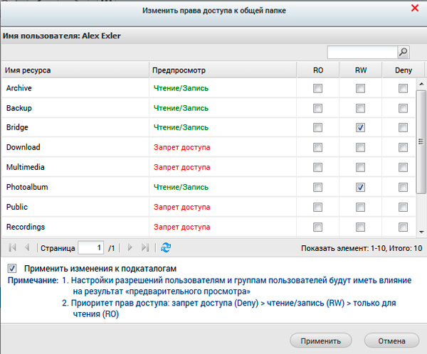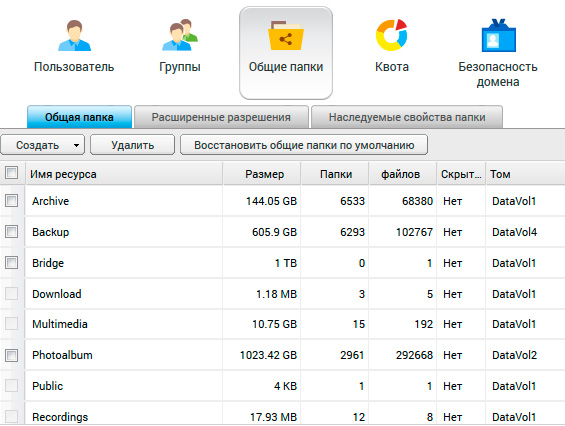 Но там все просто. Сначала создаете нужные вам папки. Причем несколько папок там будут созданы по умолчанию: Download, Multimedia, Public, Recordings, Web. У каждой папки настраиваете доступ соответствующих групп.