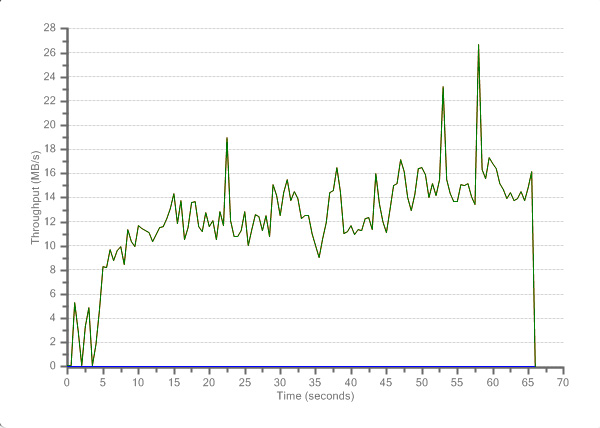 Тестирование скорости заливки на подобный NAS в гигабитной сети скоро станет (если уже не стало) совершенно бесполезным. Программный RAID5 на моём микросервере даёт 220 Мб/с на запись, и чуть больше - на чтение. В итоге, всё упирается в сеть. По CIFS протоколу мне удавалось выжать в районе 90-100 Мб/с на больших файлах