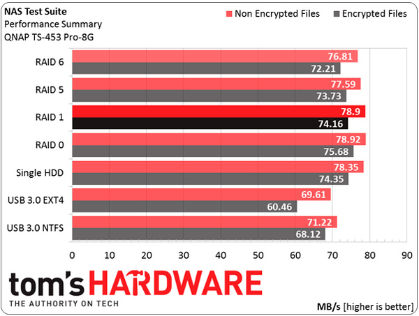 Другими словами, производителю NAS надо сильно на чём-то сэкономить, чтобы на любом уровне RAID получить меньше 90 Мб/с при копировании больших файлов.
