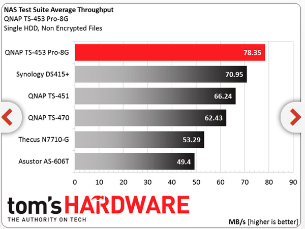 Так там же четыре сетевых интерфейса и Qnap NAS вроде как поддерживает аггрегирование каналов. Только свитч понадобится, который IEEE 802.3ad поддерживает и на котором надо правильно сконфигурировать LACP. Жаль, Алекс это не тестировал, впрочем в бытовых условиях оно редко когда бывает нужно.