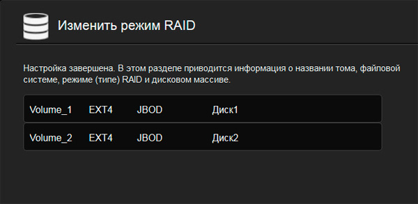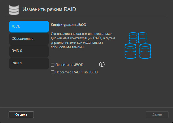 Плюс есть возможность перейти с используемого режима на JBOD, то есть сохранить данные.