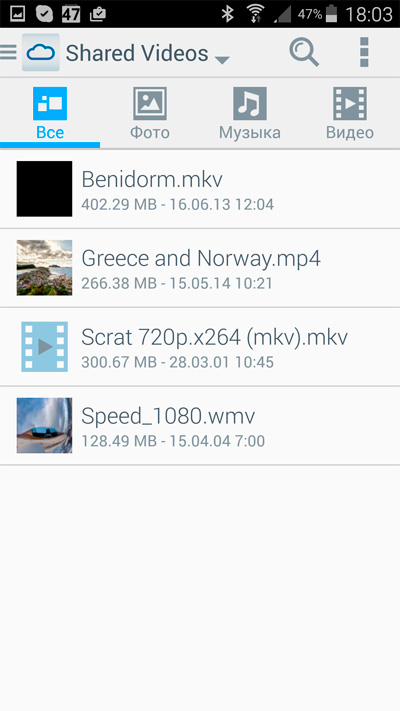После этого на смартфоне-планшете из любого места вы получаете соответствующий доступ к вашим папкам накопителя и можете пользоваться выложенными медиафайлами.
