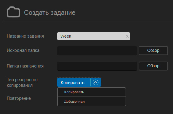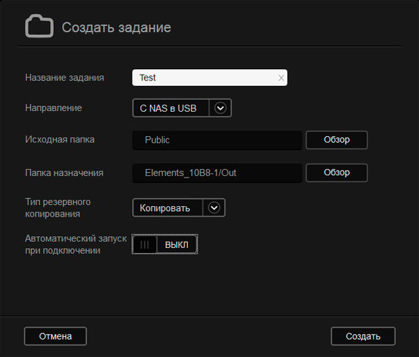 Создание задания для копирования на подключенный диск.