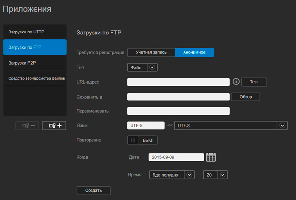 Раздел "Приложения". Тут можно настроить работу различных протоколов загрузки.