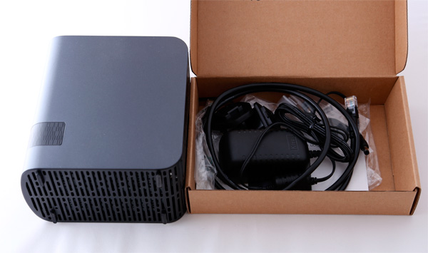 Внутри: NAS, адаптер питания, сетевой кабель RJ-45, крепеж, брошюрки.