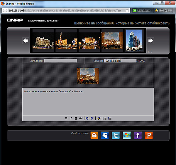 Приложение, позволяющее получать доступ к медиаконтенту накопителя через браузер. С его помощью можно дать доступ к медиаданным вашим друзьям, публиковать фотографии на сайтах социальных сетей.