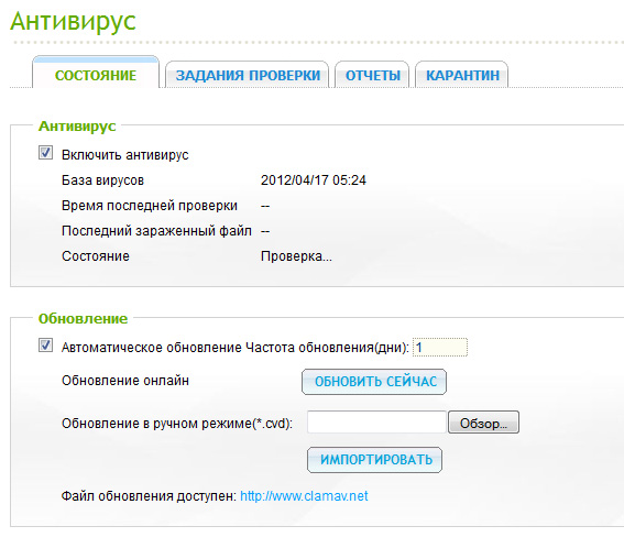 Здесь есть антивирус, основанный на продукте с открытым кодом ClamAV. Подключается, обновляется (бесплатно).