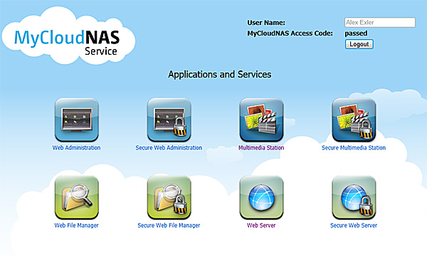 Если все правильно настроено, то с любого компьютера можно через Интернет зайти на www.mycloudnas.com, там ввести свое имя в MyCloudNAS, логин и пароль, после чего получите доступ к открытым вами сервисам.