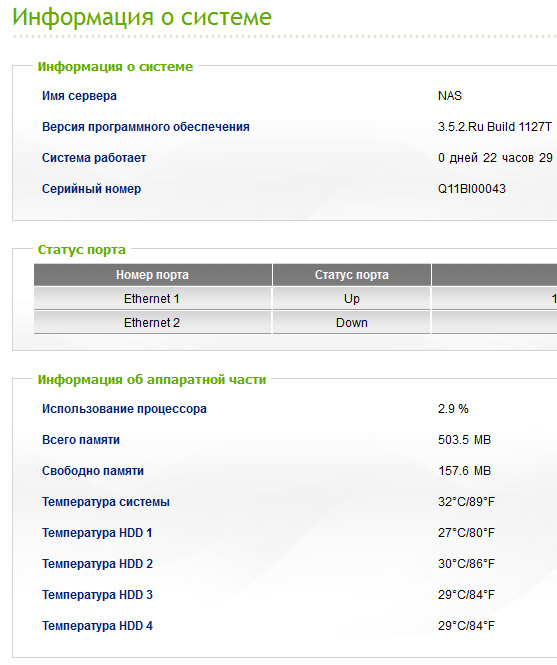 Кроме того, я пока использую в этом NAS не слишком рекомендованные для данного устройства жесткие диски WD Caviar Green Power (правда, они не рекомендуются в основном для RAID) - просто установил, что было под рукой. Если поставить соответствующие жесткие диски, производительность явно должна повыситься.