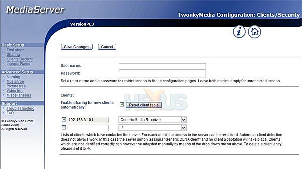 Если включить UPnP-сервер, то по специальной ссылке станет доступна админская часть медиасервера TwonkyMedia, в которой можно настраивать доступ к различному медиаконтенту.