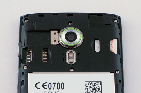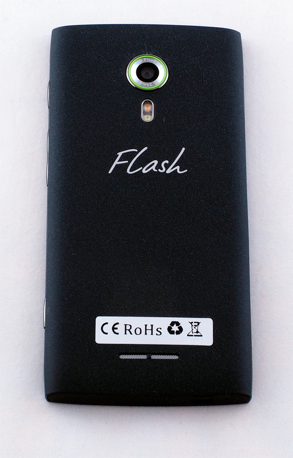 Задняя крышка Flash 2 имеет шероховатое покрытие, которое, кажется, будет быстро царапаться, однако практика показала, что покрытие довольно устойчивое. Глазок камеры для пущего эффекта имеет кольцо кислотно-зеленого цвета. Что смотрится, кстати, вполне прикольно.