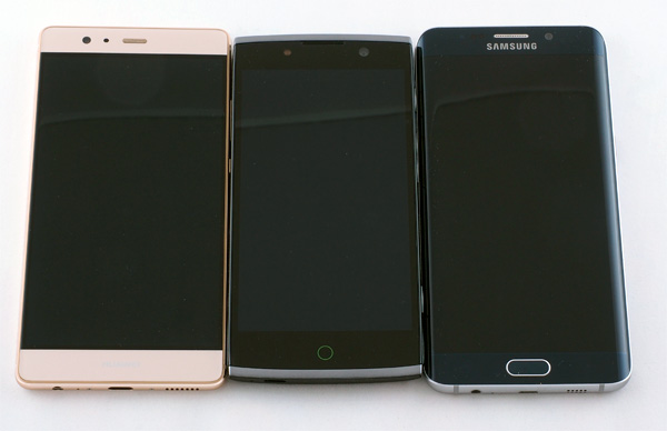 Вот наш герой рядом с Huawei P9 и Samsung Galaxy S6 edge+.