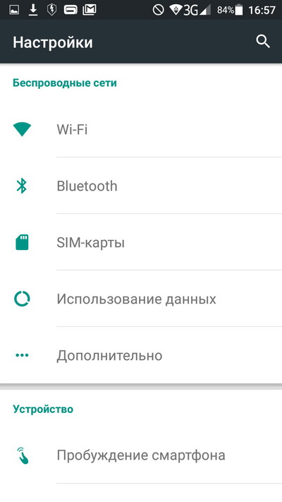 Обычные настройки Android 5.1 с минимальными дополнениями.