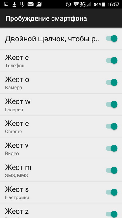 Куча вариантов пробуждения смартфона - двойным постукиванием и с вызовов конкретных приложений по жесту.