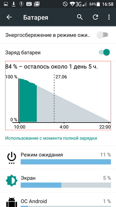 При моей стандартной загрузке он уверенно жил где-то полтора дня, при экономии энергии дотягивал до вечера второго дня.