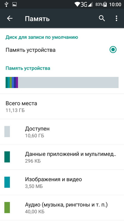 После первоначальной загрузки в смартфоне остается 10,6 Гб свободного места.
