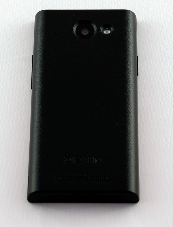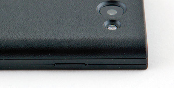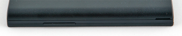 Задняя крышка вместе с торцами выполнена из черного пластика с тиснением под кожу. В руке этот пластик лежит хорошо, а выглядит, если честно, грустновато.