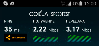Проверил работу мобильного Интернета. Результаты получились примерно в два раза хуже (медленнее), чем выдавал в том же месте на том же операторе Galaxy Note 4. Впрочем, у него поддерживается 4G, а у этого телефона - нет. (Однако по скоростям видно, что никакой 4G тут и "Самсунгом" вряд ли использовался.)