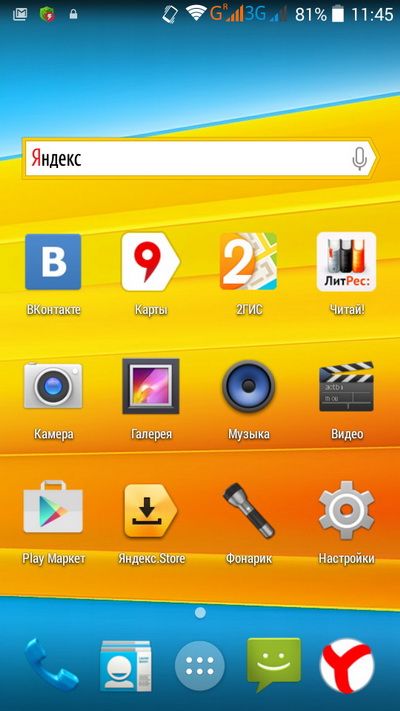 Здесь установлен самый обычный Android 4.4, которому добавили пару-тройку дополнительных опций и несколько дополнительнрых приложений, вроде сервисов "Яндекса", антивируса Dr. Web (лицензию надо будет покупать), навигации "2ГИС" и "Литреса".