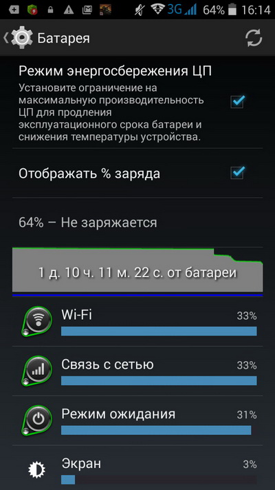 Чисто практически - так оно и происходило. Дня два при нормальной загрузке телефон держался уверенно. При небольшой загрузке проработал даже три дня, но уже совсем на издыхании.