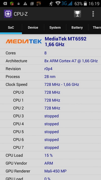 Процессор: MediaTek MT6592, 8-ядерный, 1700 МГц