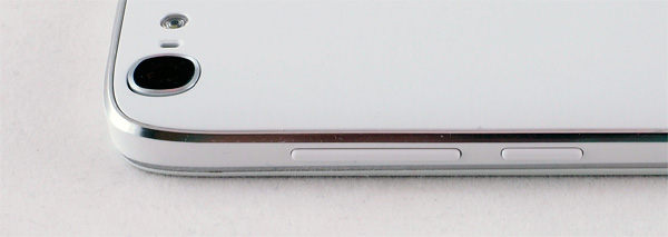 Торцы у этого смартфона слегка скошены, что довольно оригинально, хотя это и не сразу заметишь. На торцах идут две окантовки под металл, но корпус тут неметаллический (хотя в некоторых обзорах утверждается обратное).