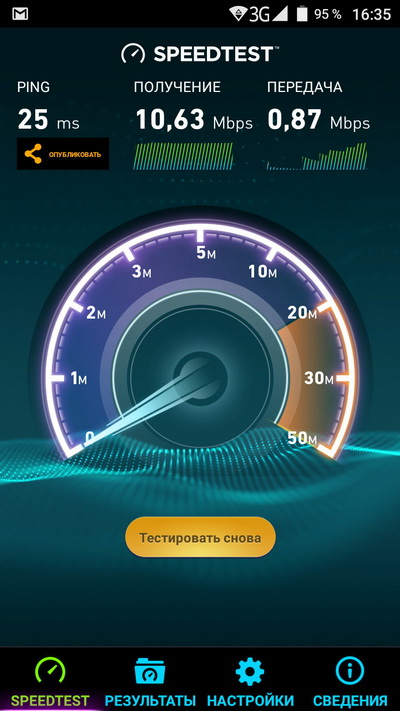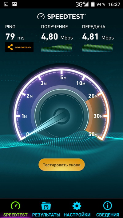 Тест 4G тоже показал средненормальные значения (у меня тут скорость "гуляет" довольно заметно).