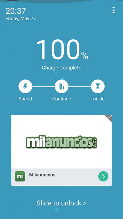 Если смартфон подключен к зарядке, то вместо обычного окна блокировки выводится вот такое - якобы от "быстрой зарядки", которую смартфон не поддерживает. И на этом окне снизу выводится реклама. Впрочем с помощью менюшки справа сверху это окно можно отключить - и оно больше появляться не будет.