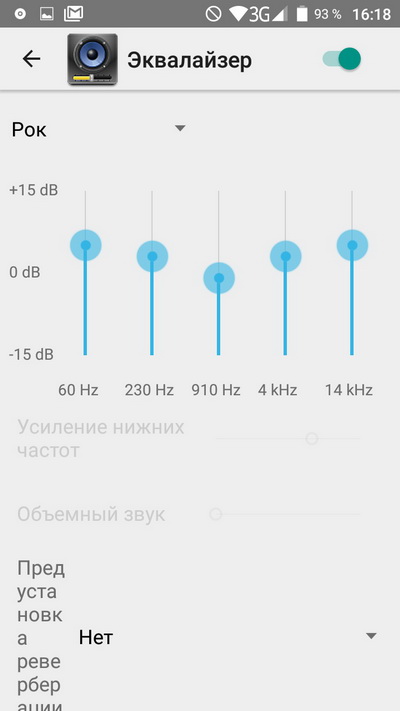 Присутствует эквалайзер, но, как обычно для такой ценовой категории, с ним заметно хуже, чем без него.