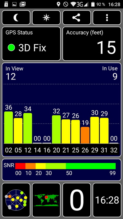 Как ни странно, здесь с определением координат первоначально возникли небольшие проблемы. Холодный старт был долгим, занял несколько минут. Когда определил спутники, поначалу работа с GPS была очень неустойчивой: периодически спутники сбрасывались и определялись снова в горячем режиме. При этом навигацией пользоваться было сложно: программа периодически слетала с дороги и не сразу восстанавливала ведение по маршруту.