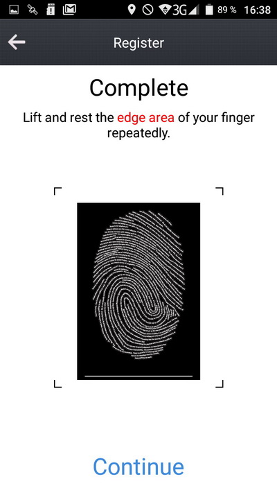 Настройка отпечатка пальца. Сканер работает вполне нормально, определяет отпечаток быстро, погрешность - в пределах аналогов.