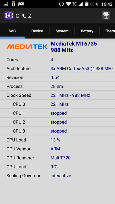 Процессор: МТК 6735, 4-ядерный, 64-битный, 1 Ггц