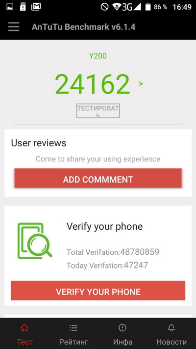 Ну что тут скажешь? Да, система характеризуется довольно низкой производительностью, но, впрочем, большинство смартфонов данной ценовой категории показывают примерно такую же производительность, разве что у Lenovo K3 Note платформа несколько мощнее.