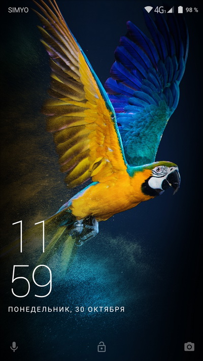 Окно блокировки с переходом в диктофон или камеру.