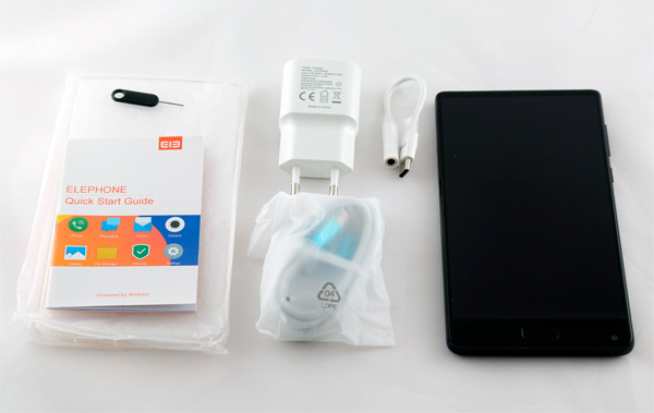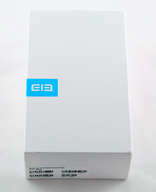Ослепительно белая коробка (мы помним, кто ввел такую моду) с логотипом Elephone. Название и параметры модели написаны на бумажной нашлепке с торца.