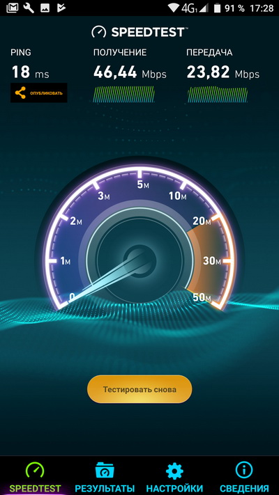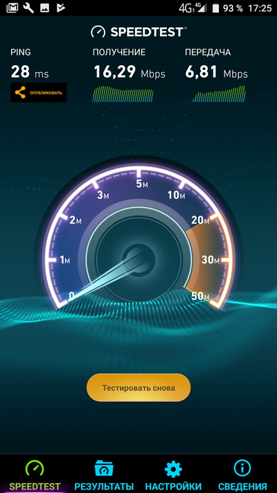Скорость мобильной связи более или менее соответствовала ожидаемой.