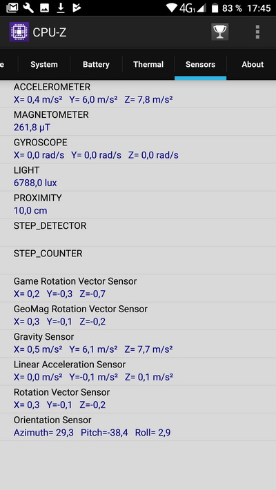 Дополнительно: датчики приближения, освещения, магнитного поля, акселерометр, гироскоп