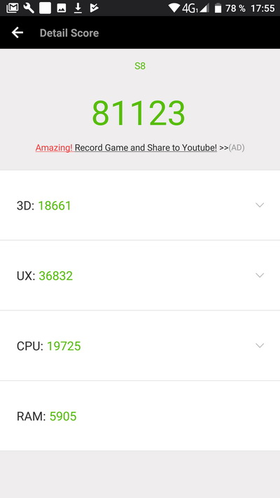 Аккумулятор здесь емкий, 4000 мА·ч, но матрица IPS, да еще и QHD. Плюс еще у таких не слишком брендовых китайцев бывают проблемы с энергопотреблением. Поэтому я опасался, что каких-то впечатляющих результатов получить не удастся.