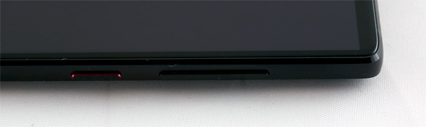 На правом торце - кнопка питания с явным закосом под Huawei P10: она имеет малиновые торцы и насечку сверху, также качелька громкости. Кнопка питания нажимается достаточно внятно, качелька громкости не такая внятная, но жить можно.