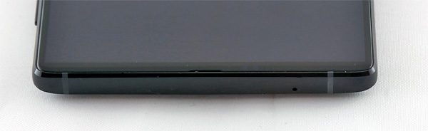 Боковые рамки - примерно полтора миллиметра, верхняя рамка - 2,5 мм, и тут сразу на себя обращает внимание тот факт, что селфи-камера переместилась в нижний правый угол, так что если не переворачивать смартфон камерой вверх, то на вашем фото будут прекрасно выделены мужественный подбородок и волосы в носу. Гениальное решение, я считаю.