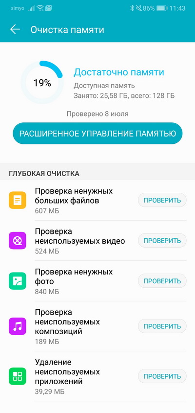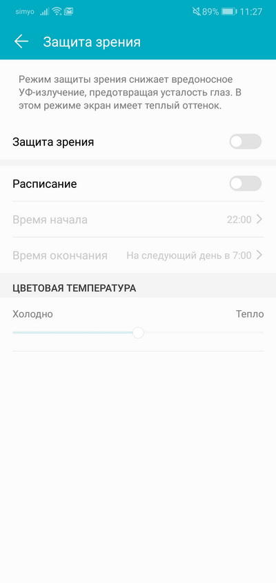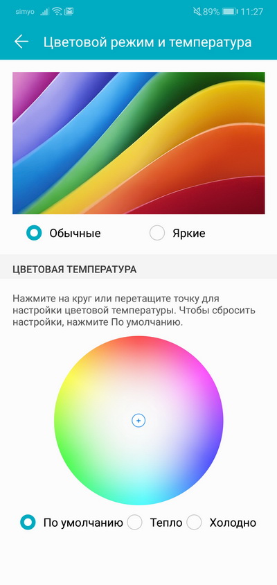 Дисплей на IPS-матрице размером в 5,84 дюйма с разрешением 2280×1080 пикселей и соотношением сторон 19:9. Качество изображения - очень хорошее, цвета сочные, но естественные, кроме того, здесь можно включать режим улучшенной яркости и регулировать цветовую температуру.