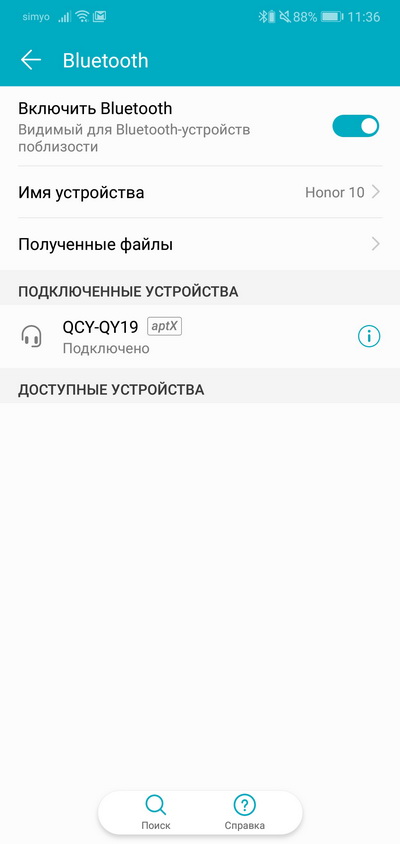 Как и у P20, здесь показывается наличие профиля aptX у подключенного устройства.