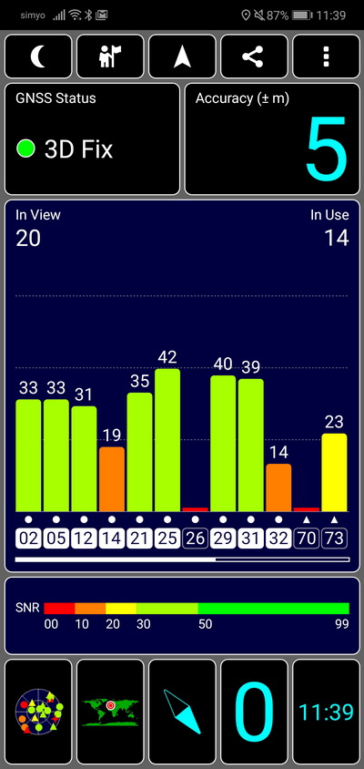 Холодный старт занял минуты две - поначалу использовал только 4 спутника, потом вышел на 14-16. После этого с определением координат никаких проблем не было.
