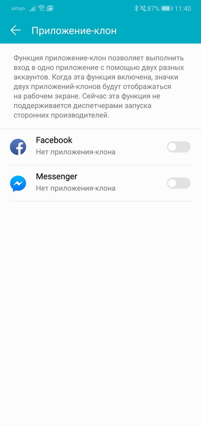 Для всяких мессенджеров и соцсетей можно сделать приложение-клон, чтобы пользоваться разными аккаунтами. Поддерживается для Facebook, Messenger и Whatsapp.
