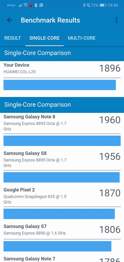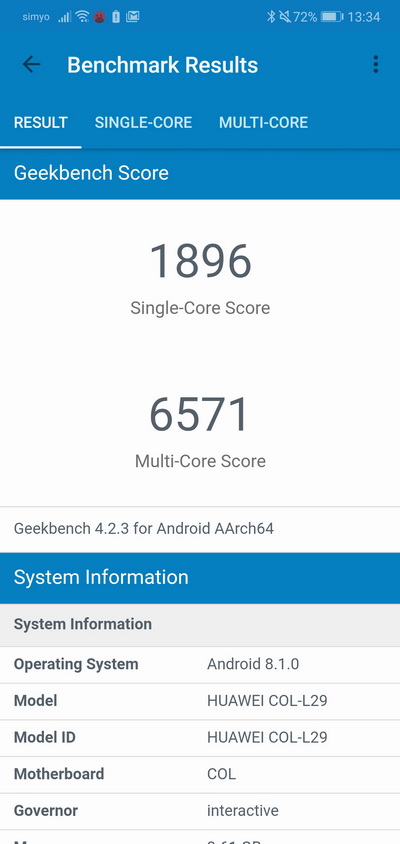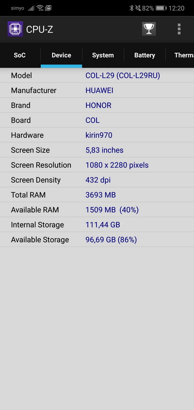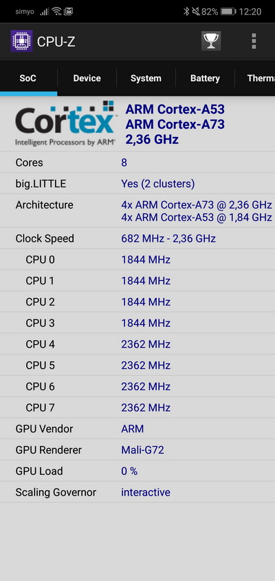Процессор: HiSilicon Kirin 970, 8 ядер, 1,8 ГГц