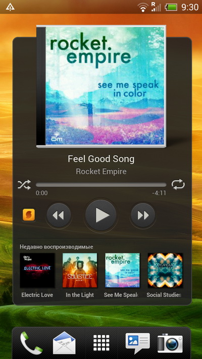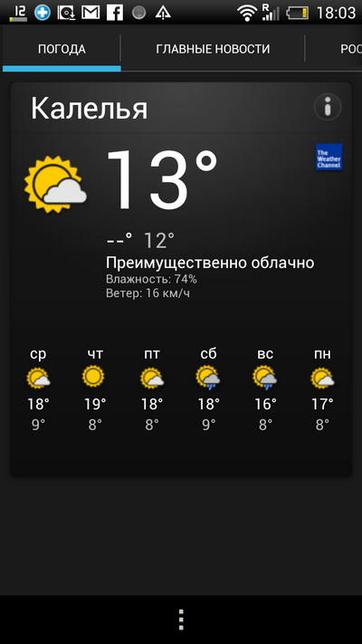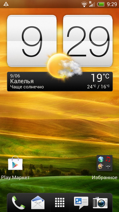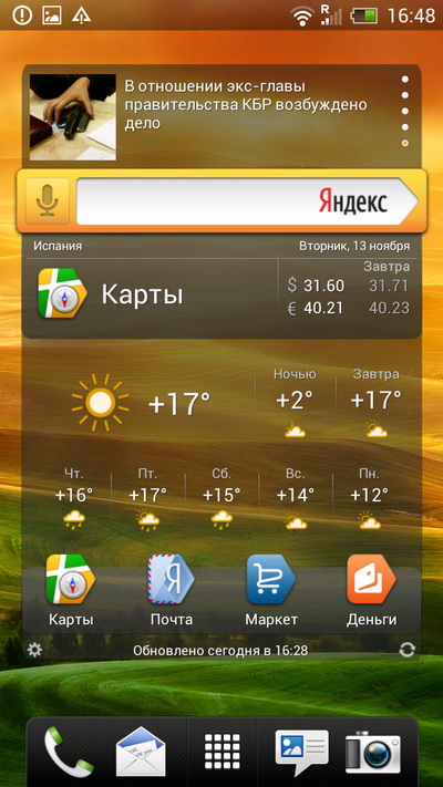 HTC традиционно ставит на все свои смартфоны соответствующие версии оболочки HTC Sense (в данном случае это HTC Sense 4.1), так что основной десктоп у них выглядит традиционно - со здоровенным виджетом с часами и погодой сверху.