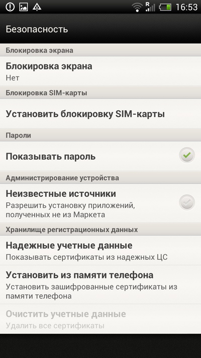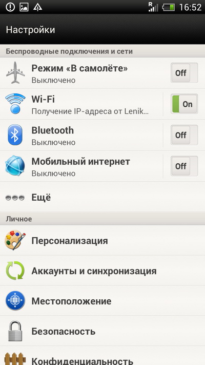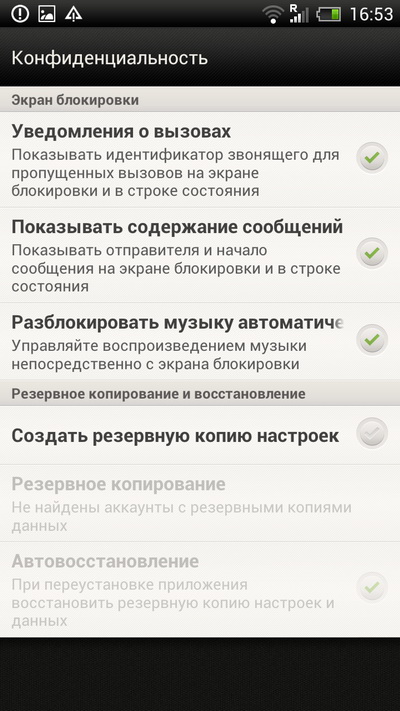 Настройки тут частично стандартные андроидные плюс HTC добавили и всякие свои специфические.