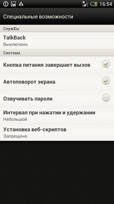 Специальные возможности. TalkBack - произносит голосом совершаемые пользователем действия.