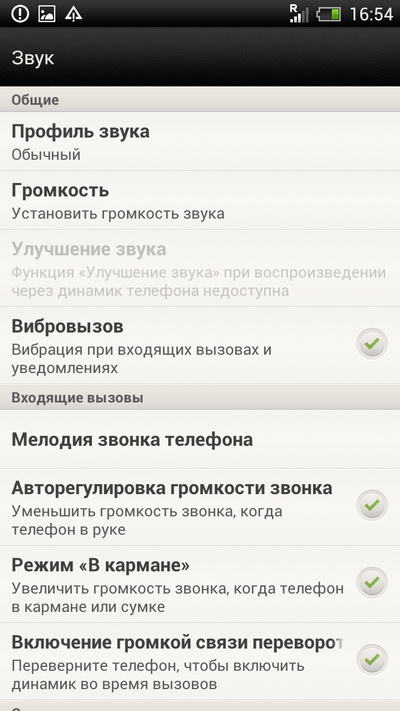 Настройки звука. Полезная возможность - включение динамика переворотом смартфона.